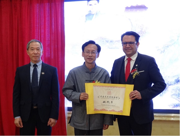 加拿大联邦国会议员马万里(Majid Jowhari)向书法家姚铁力颁奖