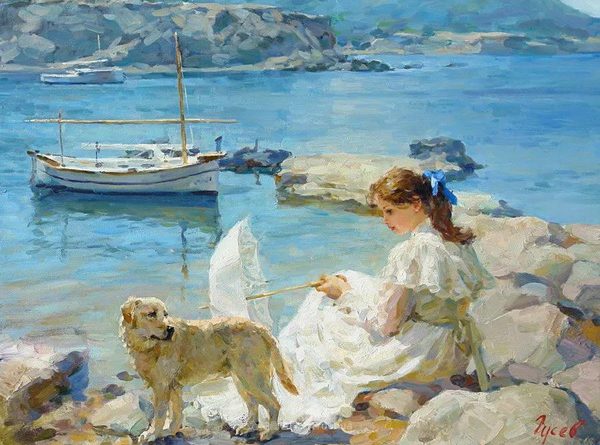 弗拉基米尔·古谢夫的创作范围很广,他成功地创作了风景画、肖像、静物画和风俗画等。他的画总是充满诗意,乐观向上,整体艺术充满了轻盈和轻松的感觉。弗拉基米尔·在法国生活和工作了一段时间,这使他的画作引入了雷诺阿的浅色系。