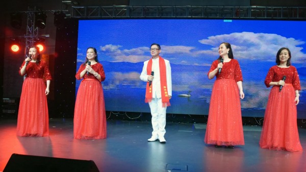 说唱类节目有地方特色浓郁的大合唱《沂蒙山小调》,酣畅淋漓的西北风表演唱《天下黄河九十九道弯》,悠扬的女生小合唱《莫尼山》,欢快的混声合唱《树梢上的芭蕾》相映成辉;独唱类节目今年也是再上一层楼,由四位专业歌手精彩献艺,赢得了观众阵阵掌声。声情并茂的男高音独唱《儿行千里》, 女高音独唱《故乡的目光》, 女高音独唱《望月》唱出了远方儿女在新春之际思乡念亲之情;女高音独唱《帕米尔我的家乡多么美》高亢嘹亮的歌声回荡在演出大厅,令人久久回味。声情并茂的朗诵《新年,你好!》献给大家新年最美好的祝福!