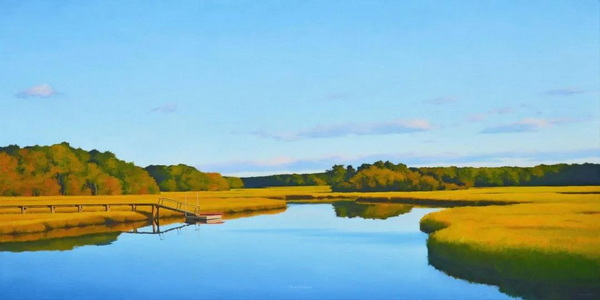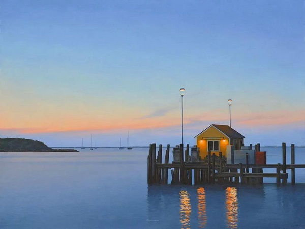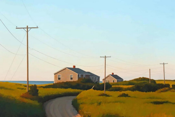 他在达奇斯社区学院获得了平面设计学位。在大学期间,他开始用丙烯酸颜料作画,并在水彩画方面接受了一些有价值的指导。大约在同一时期,吉姆去了几次科德角。当他开始画在那里遇到的场景时,一直在使用的其他主题和技术开始让位。他开始提炼将成为他风格的元素,其特点是简练的写实主义描绘和一种孤独感。这在爱德华·霍珀(Edward hopper)的作品中很常见——吉姆一生都很欣赏这位艺术家。