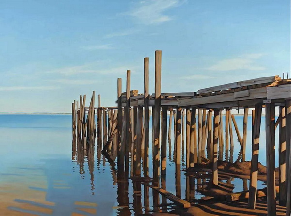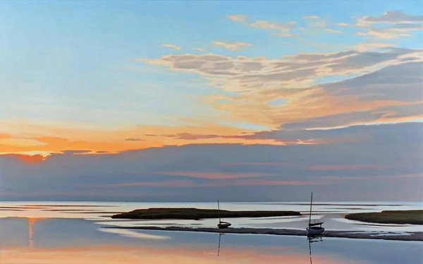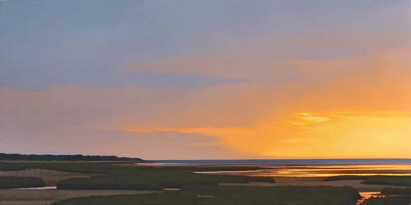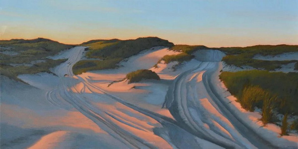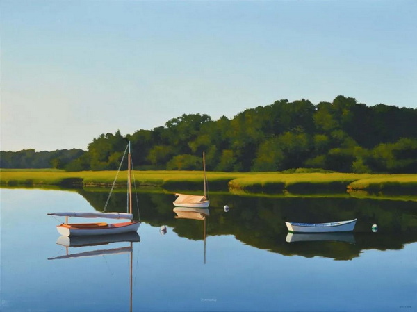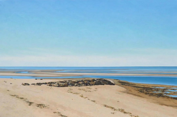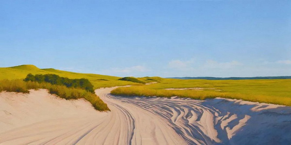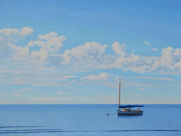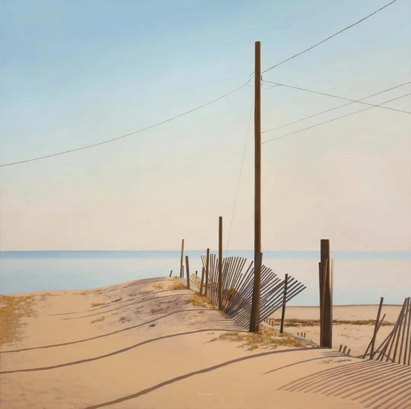 霍兰德绘画的永恒主题是海洋附近的光和空间。“对我来说,这是一个广阔而宁静的地方。颜色可以是明亮的,也可以是近乎单色的。在沙滩上的猫船,或者光线斜照在隔板上,穿过窗户,这些简单的形式让我发现,不同的光线如何影响心情,是多么迷人。”