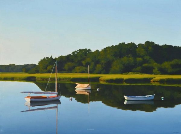 他在达奇斯社区学院获得了平面设计学位。在大学期间,他开始用丙烯酸颜料作画,并在水彩画方面接受了一些有价值的指导。大约在同一时期,吉姆去了几次科德角。当他开始画在那里遇到的场景时,一直在使用的其他主题和技术开始让位。他开始提炼将成为他风格的元素,其特点是简练的写实主义描绘和一种孤独感。这在爱德华·霍珀(Edward hopper)的作品中很常见——吉姆一生都很欣赏这位艺术家。