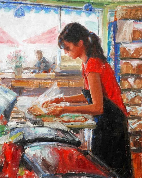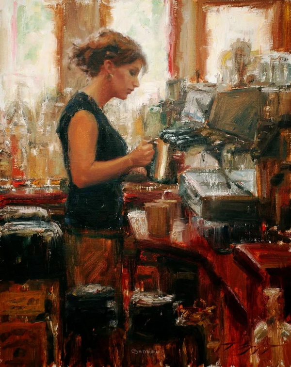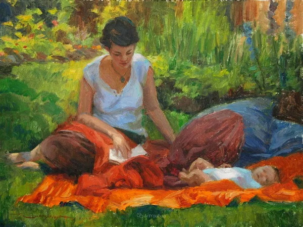 特伦特·古德姆森(Trent Gudmundsen,1978-)美国画家,1978年出生于美国加利福尼亚州。他在犹他州的一个小型农业社区长大,14岁时在那里开始了油画创作。后来他靠全额艺术奖学金上了大学,但他发现自己经常在附近的田野和峡谷里画画,而不是去上课,因为他 “在绘画中学到很多东西”……但这一经历产生了一个持久的结果:这位艺术家对他的课程感到厌烦,决定快速研究他周围的人,并很快发现他很擅长画人。