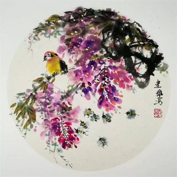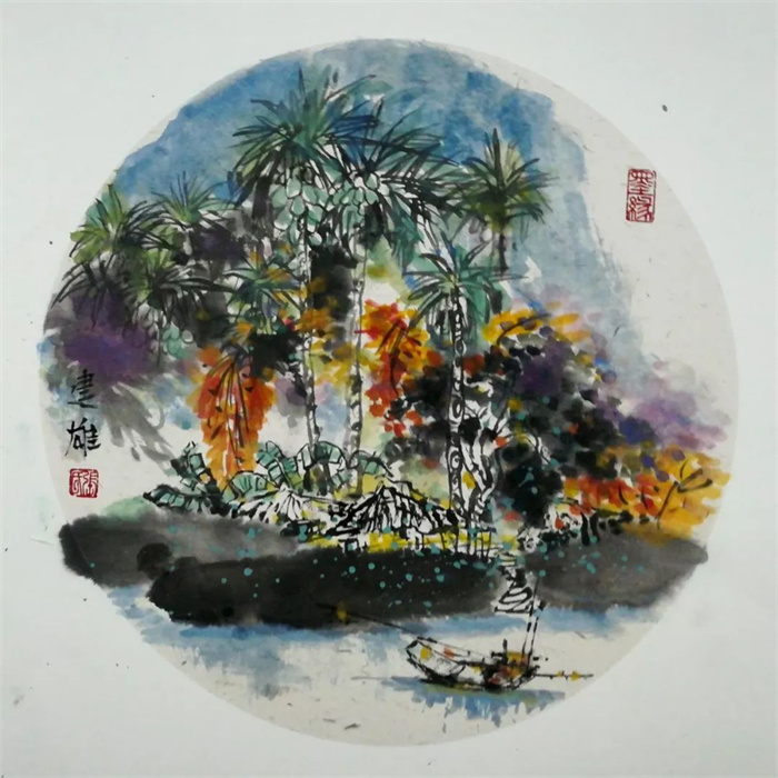 因为张建雄擅长创作山水、花鸟国画,“海之南”系列作品被博物馆收藏,多幅作品在全国、省美展展出。多幅作品发表在各类美术专业报刊上,还有部分作品,被国内外美术机构和私人收藏。中国哲学主张天人合一的哲学理念,重视人的精、气、神,主张三者合一,强调人的精气神与自然感应。疏密有绪,却别出新意;枝条穿插,却生机盎然。张建雄的花鸟国画,善于利用色彩、墨色的浓淡,使空间层次分明,不受空间、时间限制,体现人与自然中生命的和谐。并借助花草,表现人对大自然的赞美之情,彰显形式美的艺术效果。