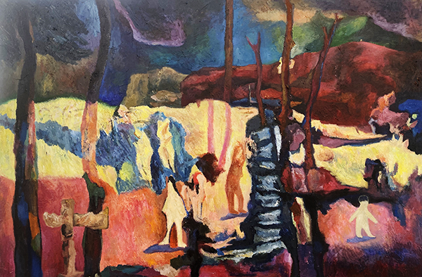 展览期间画家邓竞分享了自己创作风格和理念。表示自己作品色彩厚重、对比强烈,反映了内心情感与心理状态。他的创作从深色底色出发,在黑暗中寻找光亮,呈现沉重的艺术风格。强调相比其他艺术家的作品,自己的表达更加强烈。他就是要通过表现人与自然的关系,探索生命的本质,并将自己创作风格比作激烈的交响乐的风格。