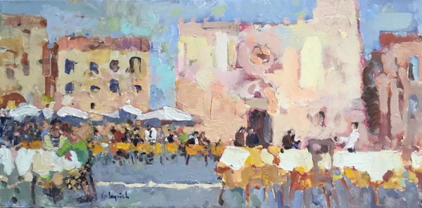 里奇女士走遍了世界各地,捕捉来自不同文化背景的人们做着简单的日常事务和享受生活。她经常在现场 “露天 “作画,一次就能完成一幅画。
