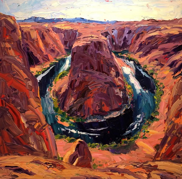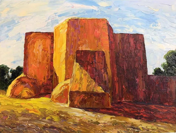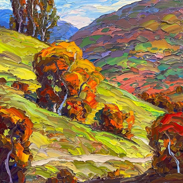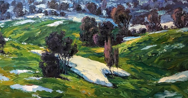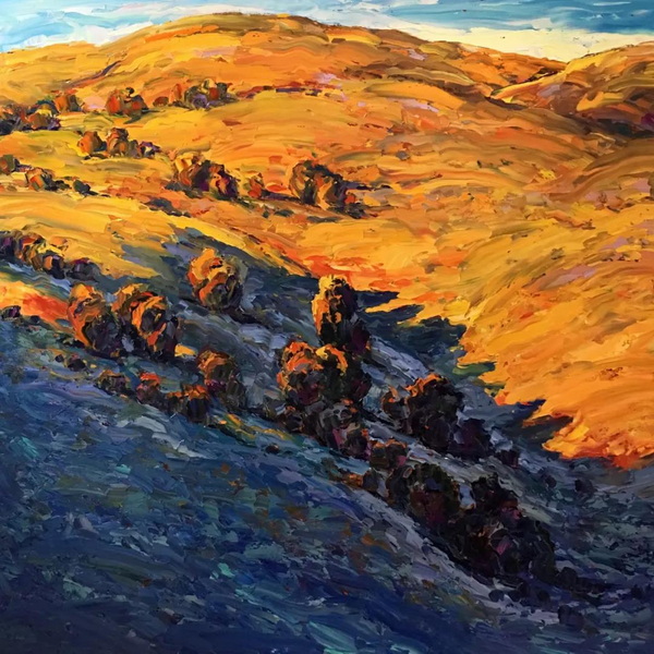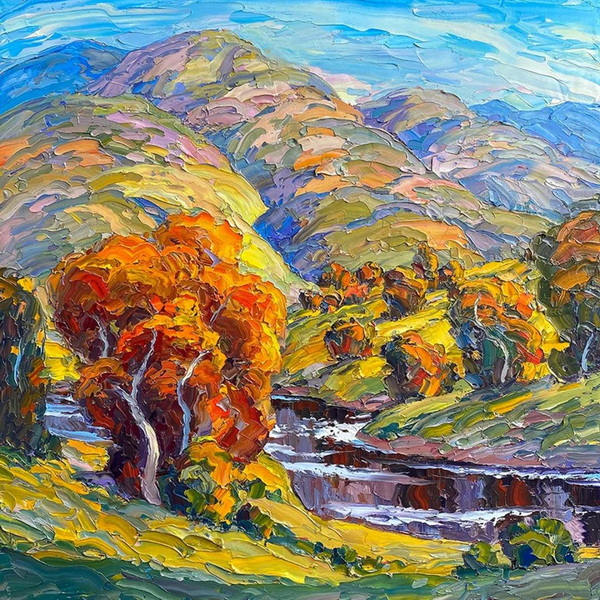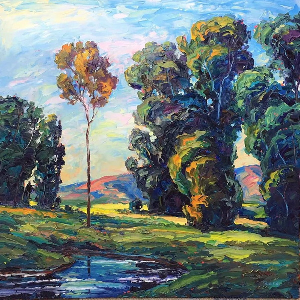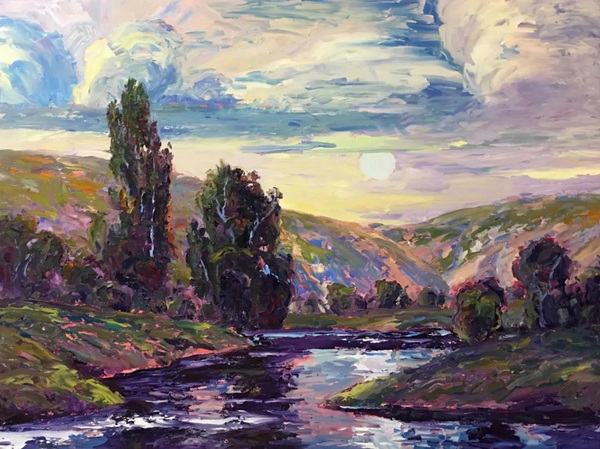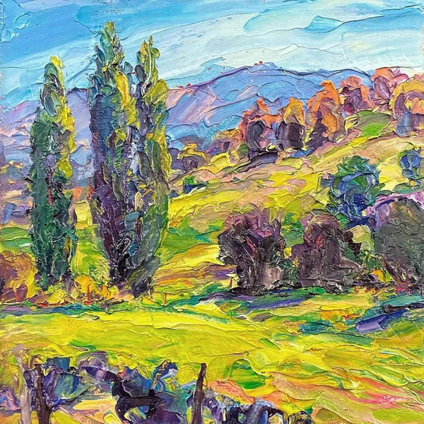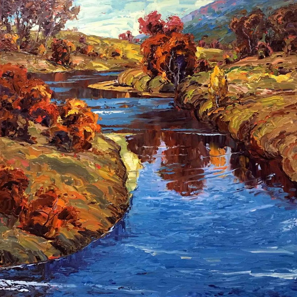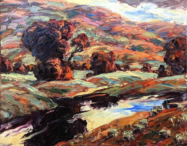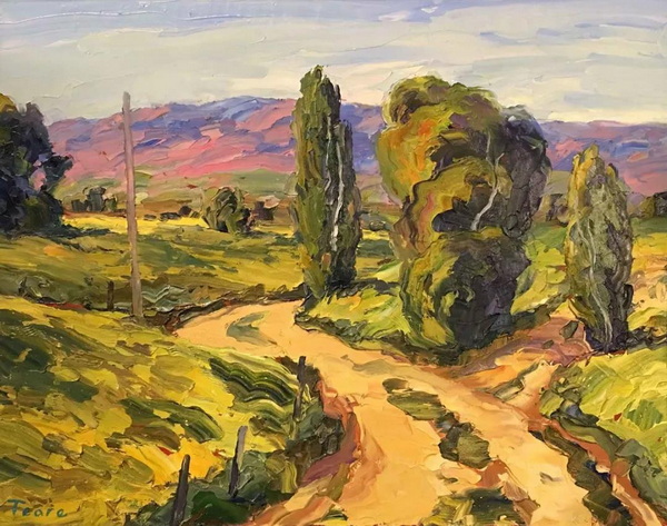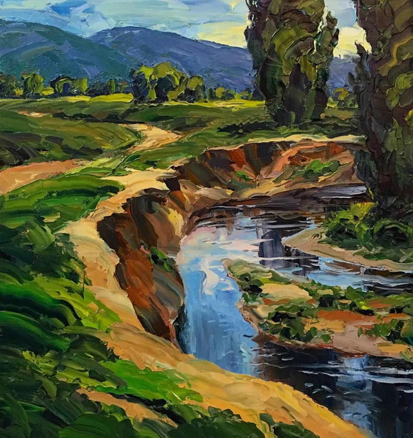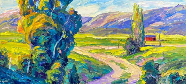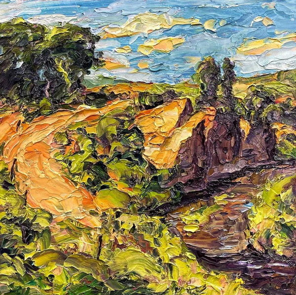 在我的探索和两场成功的抽象展之后,我又回到了风景画,并渴望给油画注入更多的质感和振动的色彩。我也将调色板刀作为我绘画的主要手段。新发现的技术融合为新一代绘画提供了丰富的曲目和强劲、充满活力的源泉。经过长时间的寻找,我终于找到了我的家。
