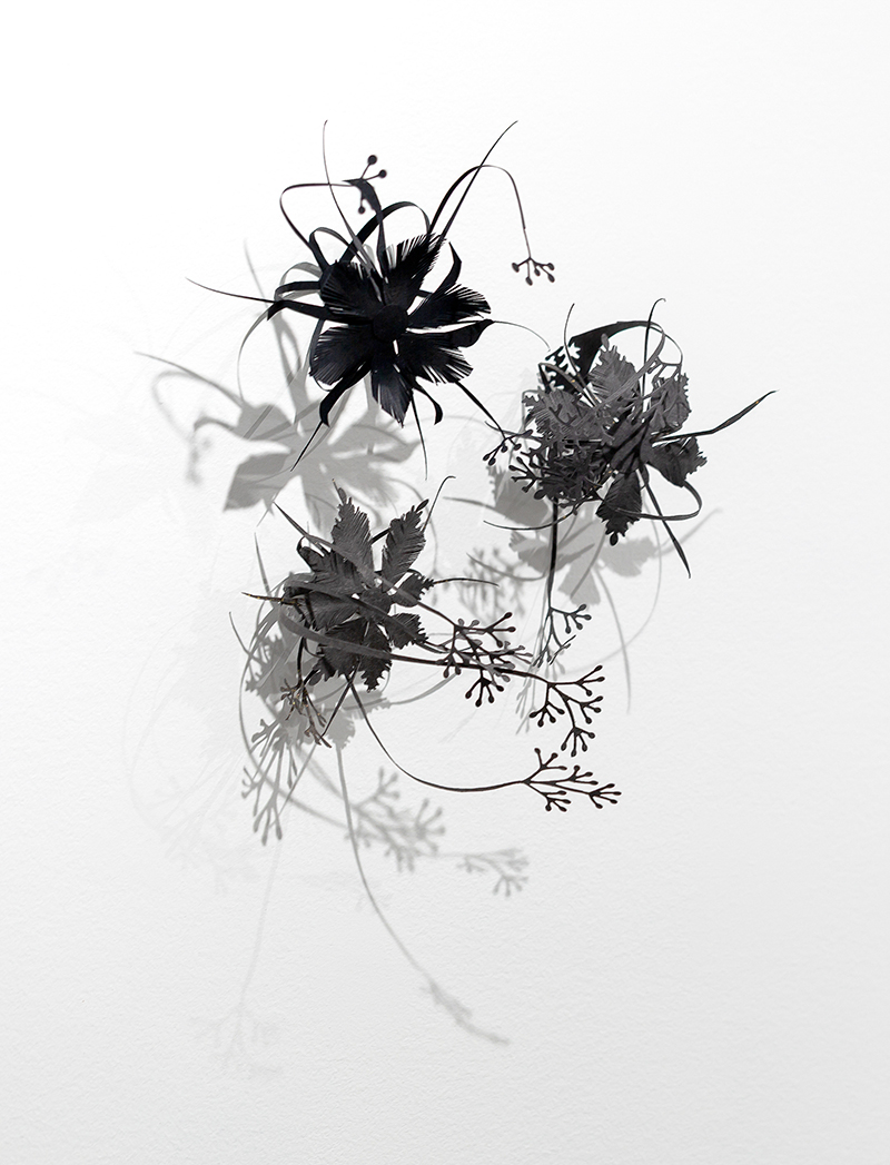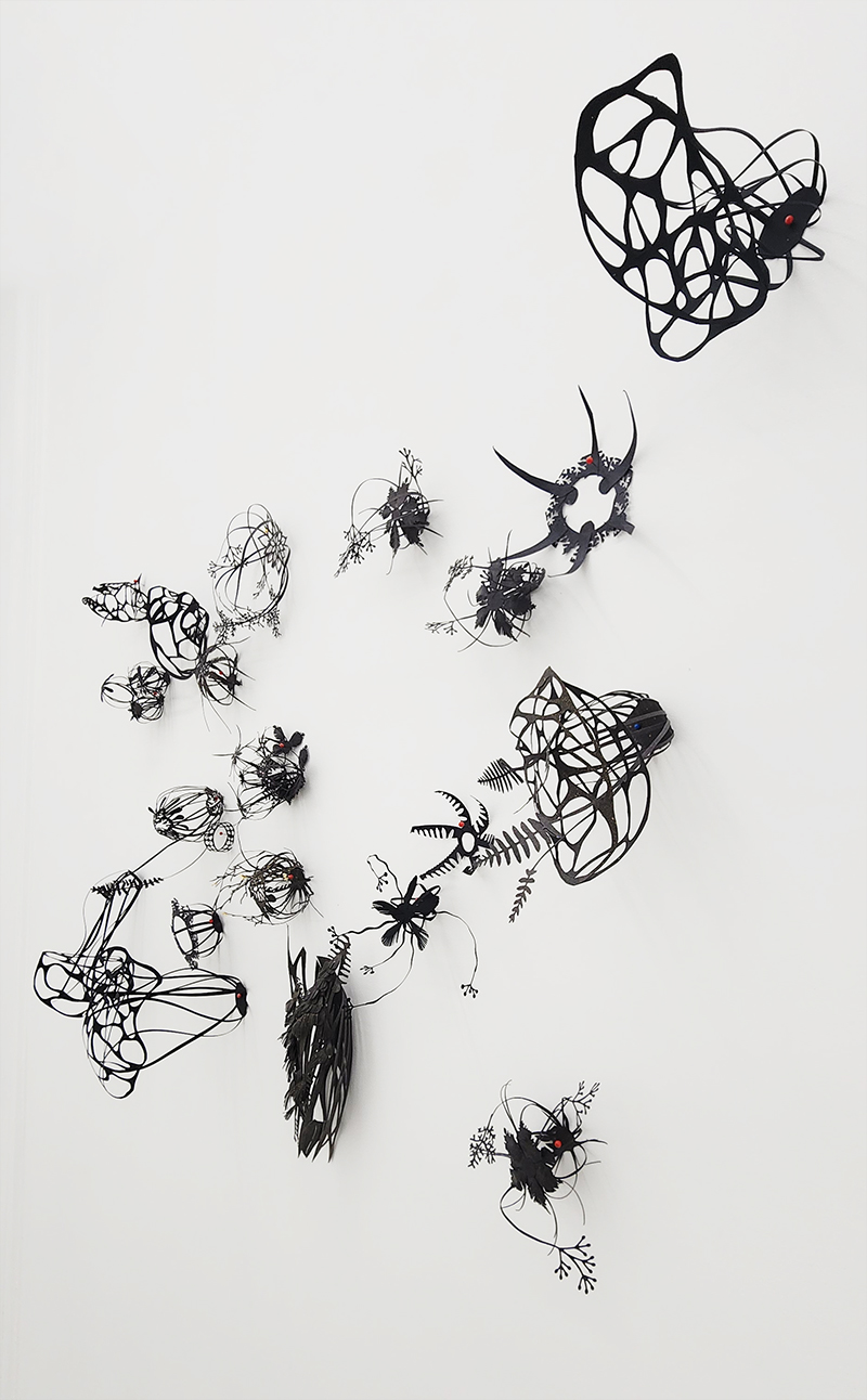 张展的艺术密码,深藏于其革命性的“无稿剪纸雕塑”之中。摒弃预设草图,她执剪如笔,在纸面上留下每一道即兴的切痕——这些痕迹远非破坏,而是构成其独特视觉语言的最小语义单元。未经渲染的黑白纸张,看似完整却布满“切痕”,在精准的光照下被激活,呈现出动态的扭曲结构与深邃的阴影剧场。上千件独立纸雕在布展中并非简单陈列,而是经历艺术家、策展人的现场重组,这一过程本身即是创作的延续,使静态的纸获得了生长的呼吸,在无生命材质与有机形态的奇妙共生中,拓展了“纸”作为媒介的当代潜能。以无稿剪纸,呈现伤痕即语言,结构即叙事的艺术内核。