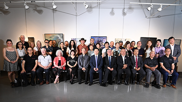 开幕式现场嘉宾云集,政要、领馆代表、艺术家及艺术爱好者齐聚一堂。策展人任娅表示,艺术是跨越国界的桥梁,应以画笔铭记历史、用和平连接世界。程洪波副总领事指出,画展开幕恰逢七七事变纪念日,艺术应唤起青年对历史的认知与和平的守护意识。组委会主席张俭表示,每一幅作品都凝聚着艺术家的心血,呼吁人类共同守护来之不易的和平。于琮章会长回顾协会十年发展,感谢青年艺术家的积极参与与资深艺术家的卓越贡献。列治文山市议员(City Councillor)崔冰辉(Simon Cui )指出,展览唤起对中国近现代史的记忆,彰显中国人民的血泪与抗争。前国会议员(Former MP)蒋振宇(Paul Chiang 蒋振宇表示,艺术是引导年轻人理解和平、促进社会和谐的重要方式。赞助商代表, 华人汽车协会会长Jason Zhang等都纷纷上台发言致辞,并祝和平主题画展圆满成功。