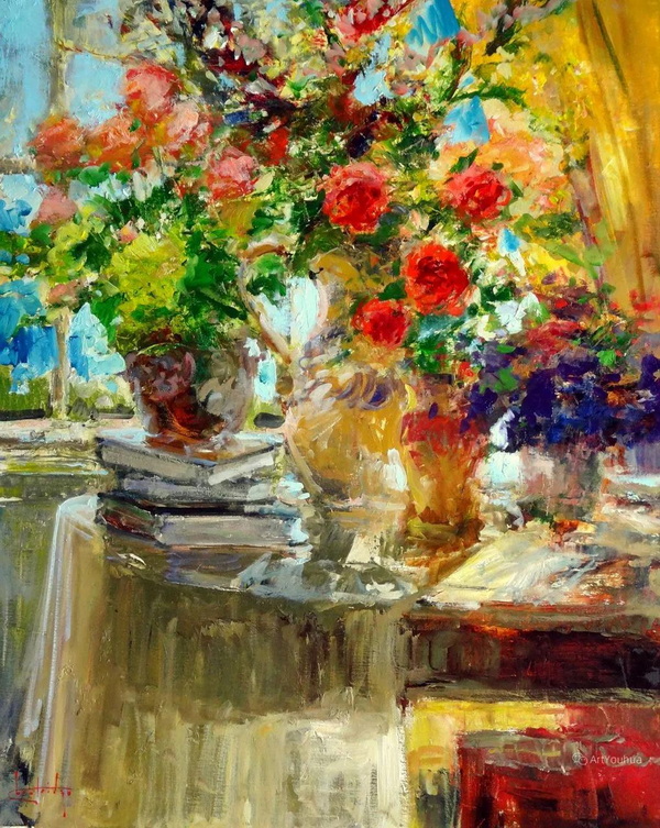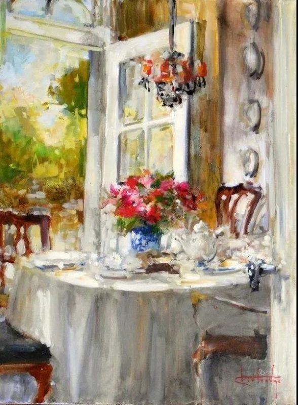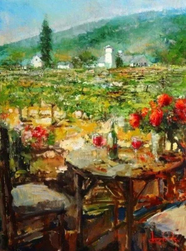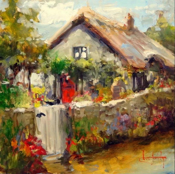“浪漫主义印象派是我所做的……。我认为这个词最好地表达了我的绘画方式和原因。我欣赏,或试图欣赏所有形式的艺术,但最初激起我的是印象派。对我来说,它是大胆的,充满了生命和色彩。它是无拘无束的,有一种神奇的品质。它不是试图准确地告诉你什么,而是让你感觉到它的存在!这就是为什么我开始着手创作。这就是为什么我开始通过这种艺术风格来诠释生活;它邀请观众的情感参与进来。”