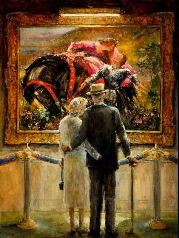 “在过去的几年里,我最欣赏的两位艺术家是乔斯奎因·索罗拉和约翰·辛格·萨金特。索罗拉,因为他热情的表达,而萨金特,因为他简单的掌握。然而,作为一个艺术家,我最热情的是坚持我对我所画的东西的表达。我认为理查德·施密特,一位优秀的当代艺术家,把它说得最好,”不是你看到了什么! 而是你看到了什么!”。