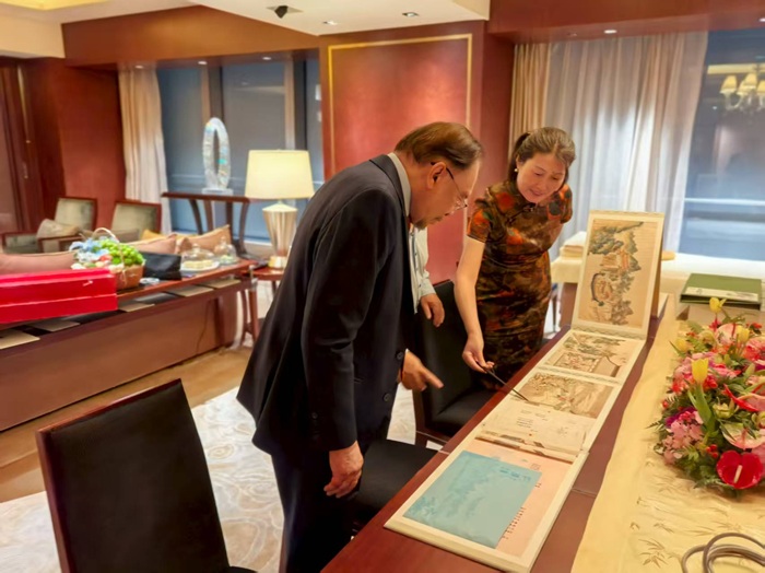给马来西亚首相安华讲解《红楼梦诗词》。