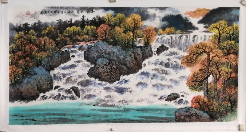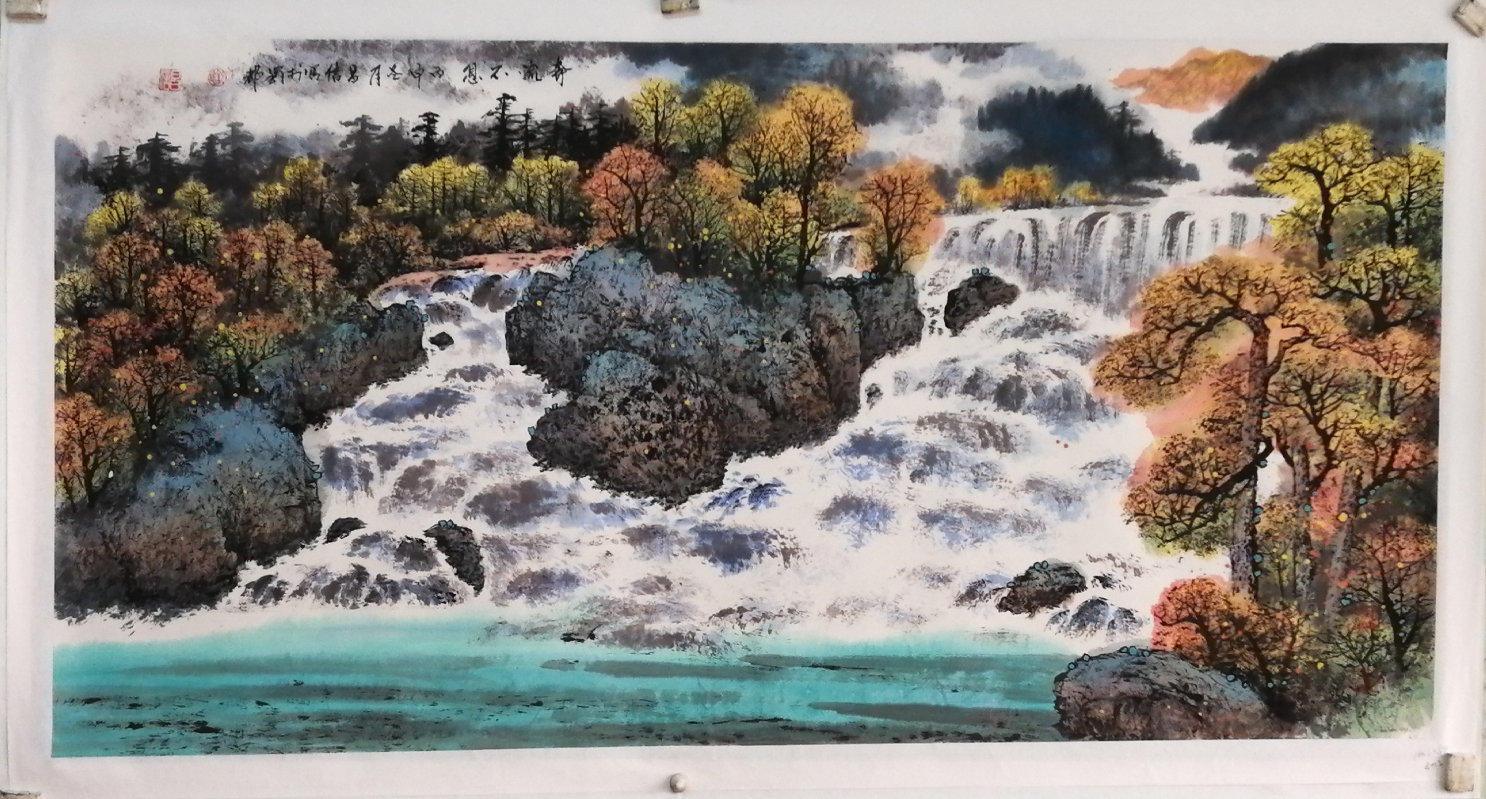 《奔流不息》 彩墨画 68cm×138cm (四尺整纸) 2016年作